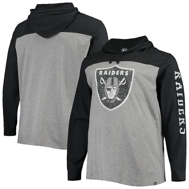 Men's '47 Heathered Gray/Black Las Vegas Raiders Franklin Wooster Long Sleeve Hoodie T-Shirt