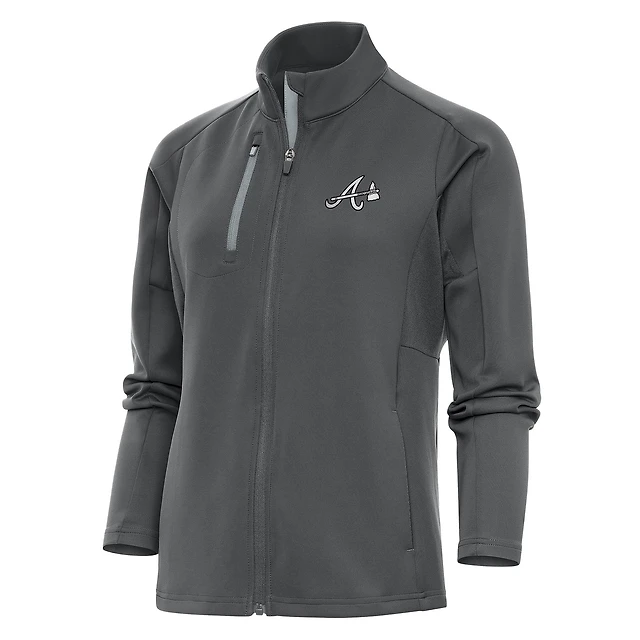 Women's Antigua Charcoal Atlanta Braves Brushed Metallic Generation Full-Zip Jacket