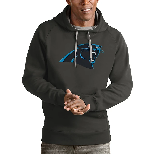Men's Antigua Charcoal Carolina Panthers Victory Pullover Hoodie