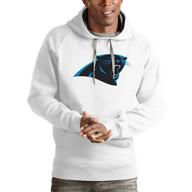 Men's Antigua White Carolina Panthers Victory Pullover Hoodie