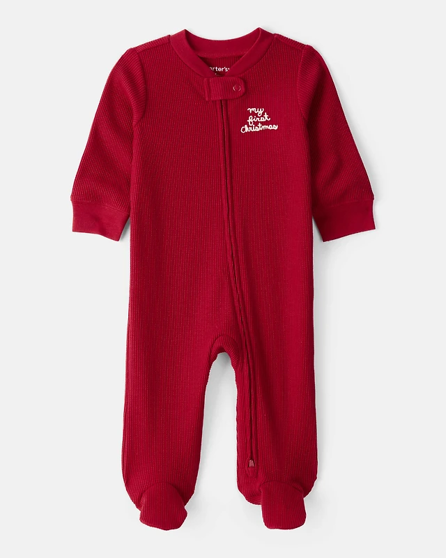 Baby My First Christmas Cotton Sleeper - Red