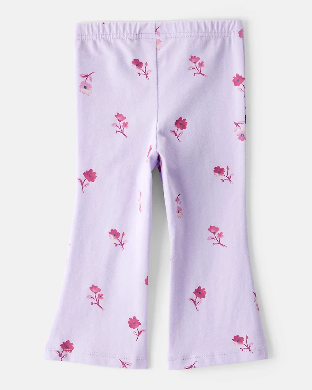 Baby Girl Floral Cotton Flare Pull-On Stretch Leggings - Purple