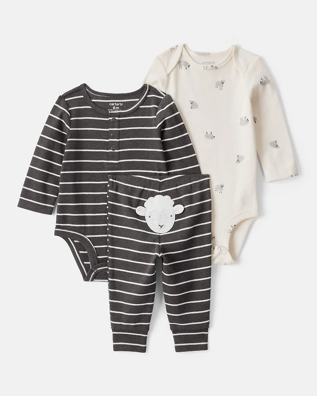 Baby Boy 3-Piece Striped Sheep Print Long-Sleeve Bodysuits & Pant Set - White/Black