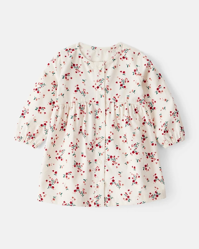 Baby Girl Floral Print Corduroy Long-Sleeve Dress - White