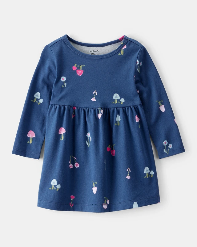 Baby Girl Christmas Tree Print Long-Sleeve Dress