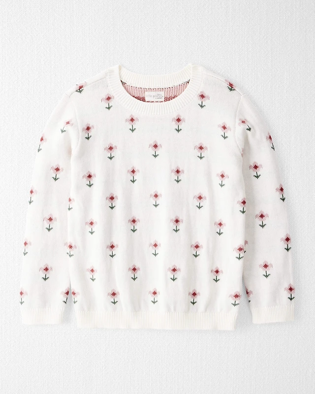 Girls Organic Cotton Sweater Knit Wildflower Maze Print