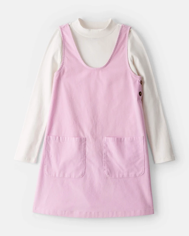 Girls Corduroy Dress Set - Pink/Ivory