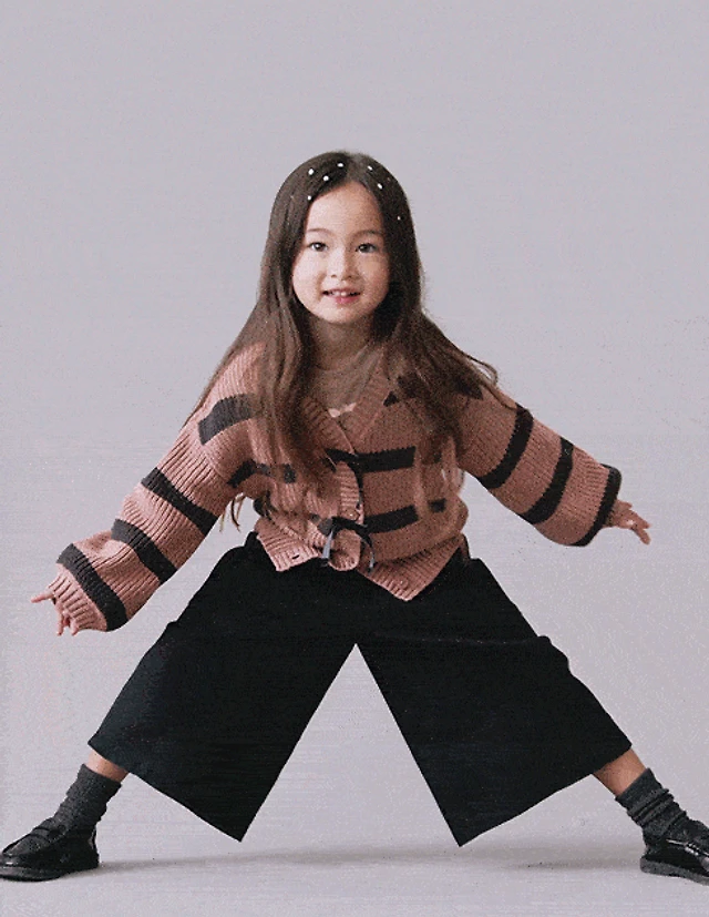 Toddler Girl Striped Puff-Sleeve Cardigan with Bows - Mocha Brown/Black
