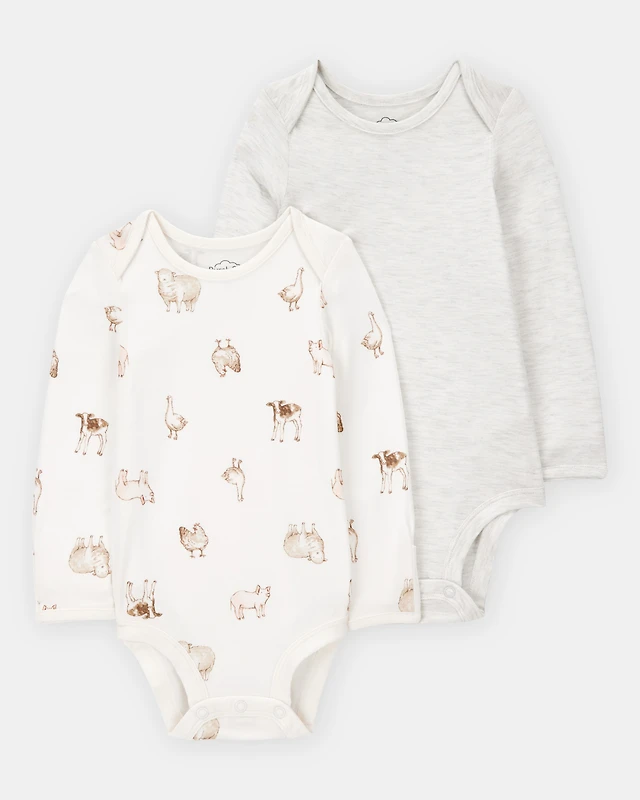 Baby 2-Pack Animal Print Long-Sleeve Bodysuits
