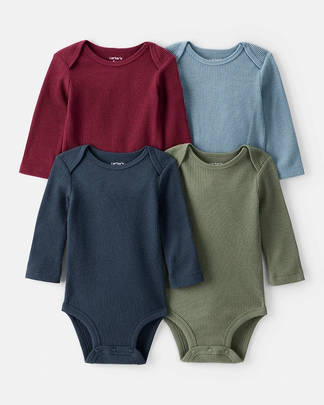 Baby Boy 4-Pack Long-Sleeve Multipack Bodysuits - Blue/Red/Navy/Green