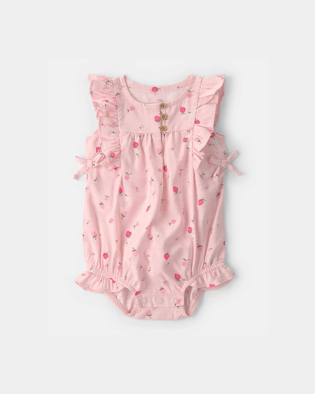 Baby Girl Strawberry Bubble Sleeveless Romper - Pink