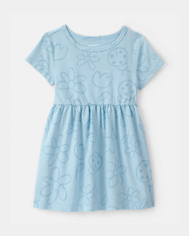 Baby Girl Floral Ladybug Short-Sleeve Dress - Blue