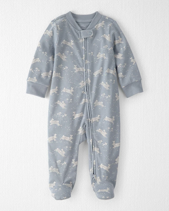 Baby Organic Cotton Sleep & Play Pyjama Blue Bunnies Print