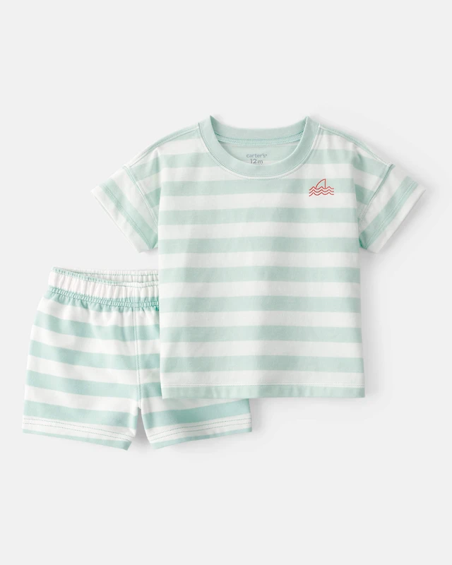 Baby Boy 2-Piece Organic Cotton Striped Shorts Set