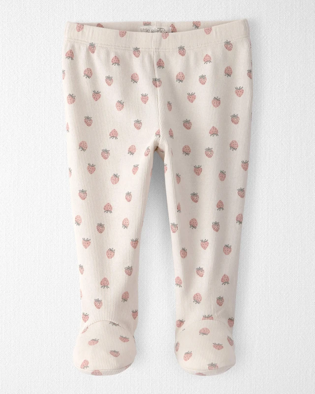 Baby Girl Organic Cotton Rib Footed Pants Strawberry-Print