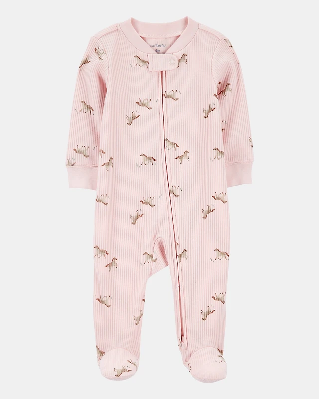 Baby Girl Horse Print 2-Way Zip Ribbed Sleeper pyjamas