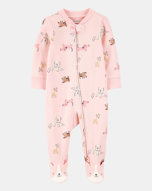 Baby Girl Dog Print 2-Way Zip Cotton Sleeper pyjamas