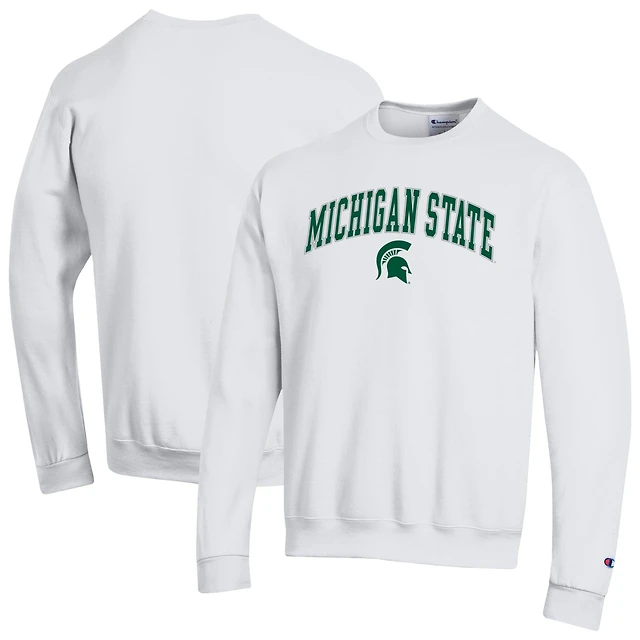 Men's Champion Heather Gray Michigan State Spartans Arch Over Logo Pullover Sweatshirt