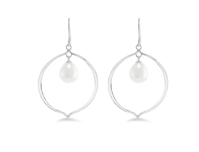 10K White Gold 20mm Polished Twist Octagon Creole Earrings