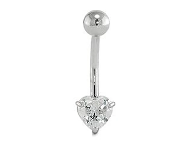 14K White Gold 6mm Heart Cubic Zirconia Heart Belly Ring
