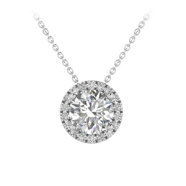 Sterling Silver 18" Blue Sapphire & White Zircon Halo Pendant