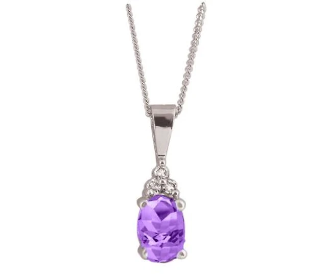 10K White Gold Amethyst and Diamond Infinity Pendant