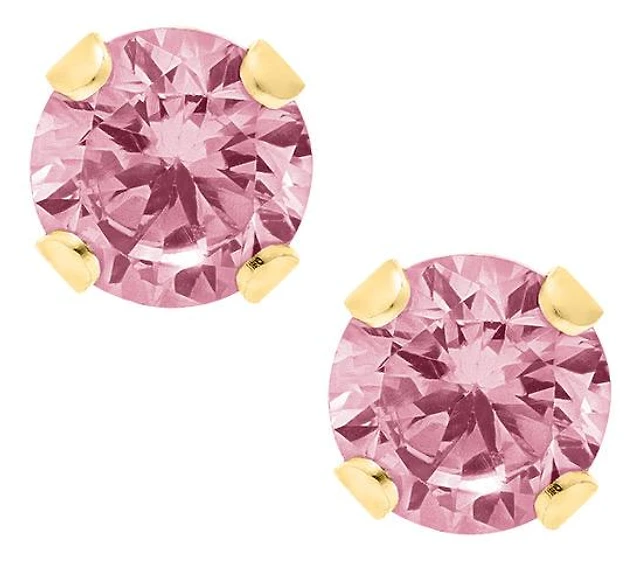 14K White Gold Pink Cubic Zirconia Studs with 14K Gold Filled Fluted Bell Backs