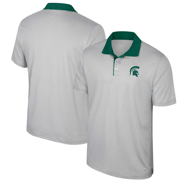 Men's Colosseum Gray Michigan State Spartans Big & Tall Tuck Striped Polo