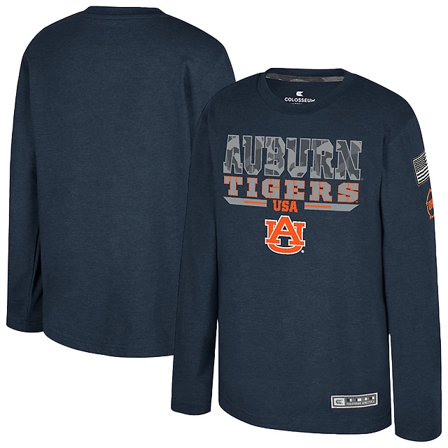 Youth Colosseum Heather Navy Auburn Tigers OHT Military Appreciation Oorah Long Sleeve T-Shirt