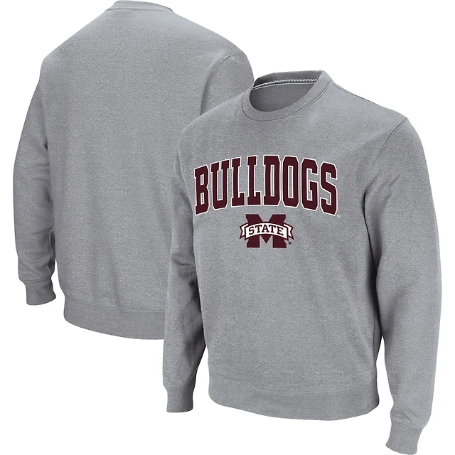 Men's Colosseum Heathered Gray Mississippi State Bulldogs Arch & Logo Tackle Twill Pullover Sweatshirt