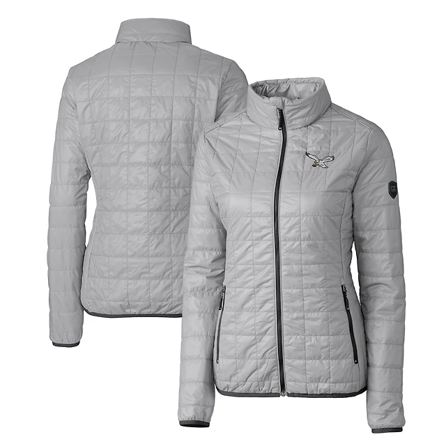 Women's Cutter & Buck Gray Philadelphia Eagles Gridiron Classics Logo Rainier PrimaLoft Eco Insulated Full-Zip Puffer Jacket