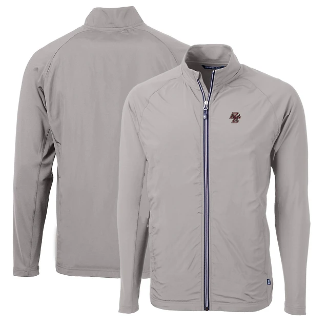 Men's Cutter & Buck Gray Boston College Eagles Big Tall Adapt Eco Knit Hybrid Recycled Full-Zip Jacket