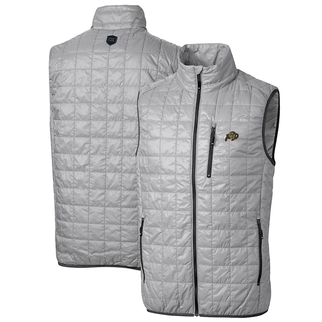 Men's Cutter & Buck Gray Colorado Buffaloes Big Tall Rainier PrimaLoft Eco Full-Zip Puffer Vest