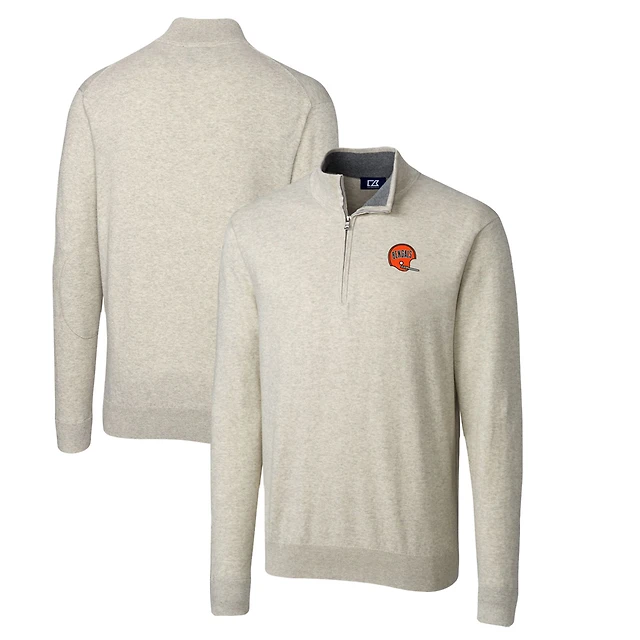 Men's Cutter & Buck Oatmeal Cincinnati Bengals Throwback Logo Lakemont Tri-Blend Big Tall Quarter-Zip Pullover Sweater