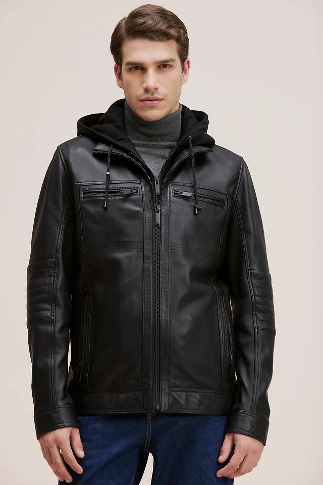 HAYDEN Genuine Lamb Leather Bomber Jacket Detachable Storm Insert