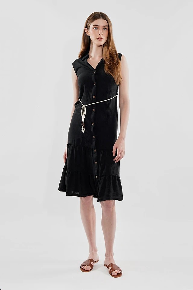 Stylexchange Vintage Rope Belted Button Down Day Dress - White
