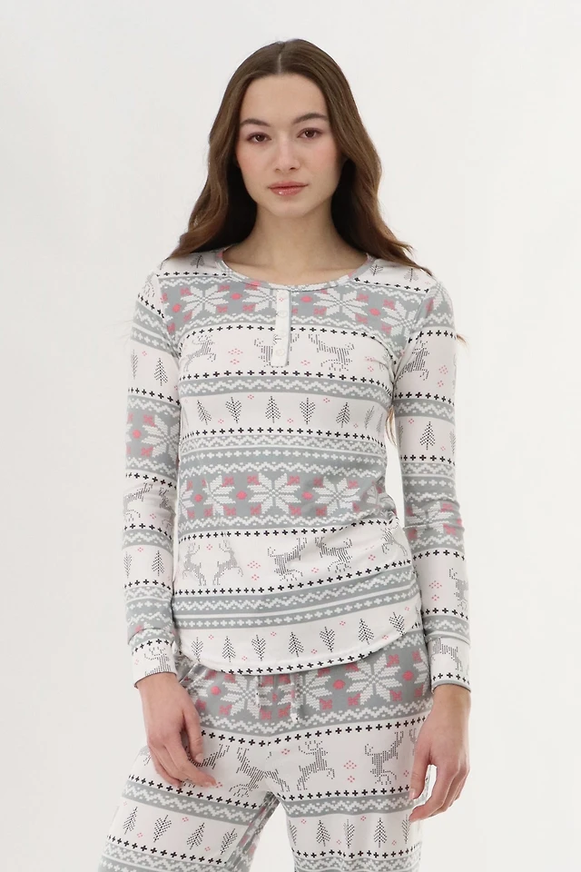 Canada Weather Gear Long Sleeve Festive Pajama Top