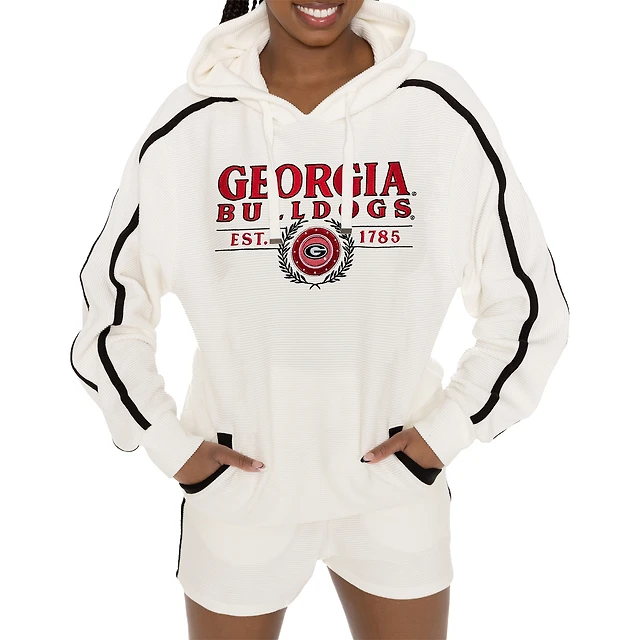 Women's Gameday Couture Cream Georgia Bulldogs Down, Set, Go Pullover Hoodie and Shorts Set