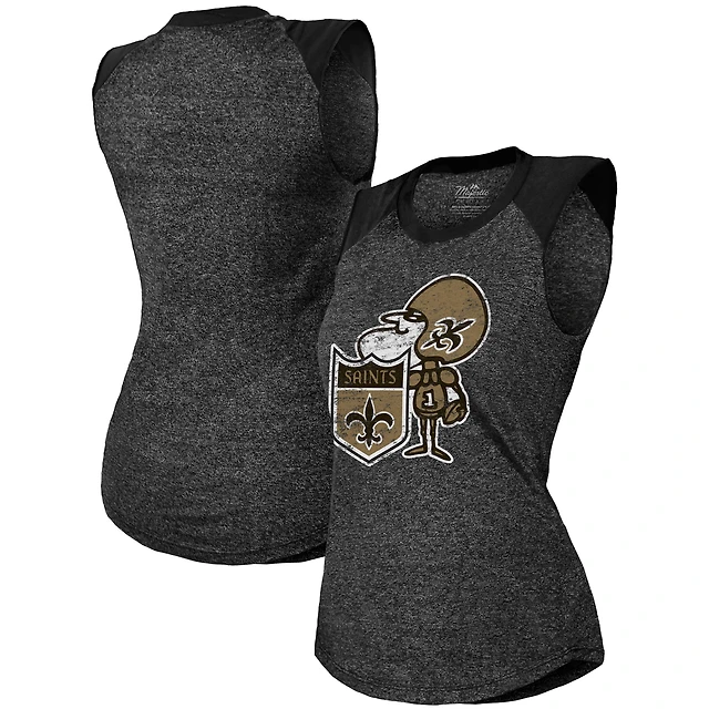 Women's Majestic Threads Black New Orleans Saints Retro Tri-Blend Raglan Muscle Tank Top