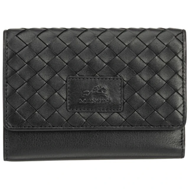 Mancini Basket Weave RFID Genuine Leather Tri-fold Clutch Wing Wallet