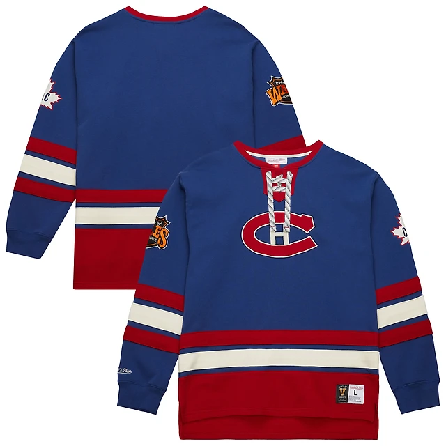 Men's Mitchell & Ness Royal Montreal Canadiens Heritage Lace-Up Pullover Sweatshirt