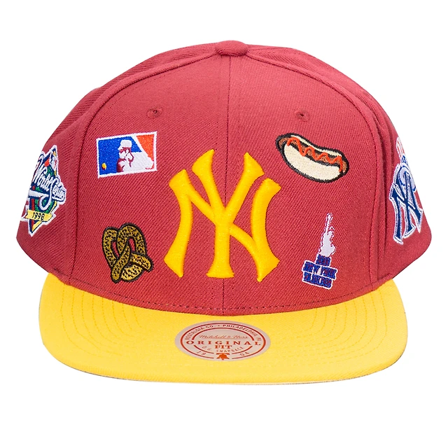 Men's Mitchell & Ness Red New York Yankees Patches Snapback Hat