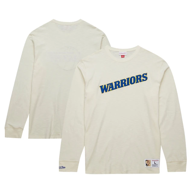 Men's Mitchell & Ness Cream Golden State Warriors Hardwood Classics Vintage Long Sleeve T-Shirt