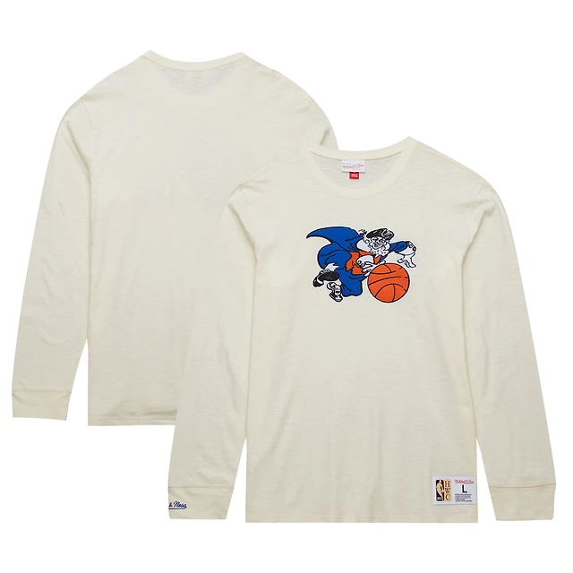 Men's Mitchell & Ness Cream New York Knicks Hardwood Classics Vintage Long Sleeve T-Shirt