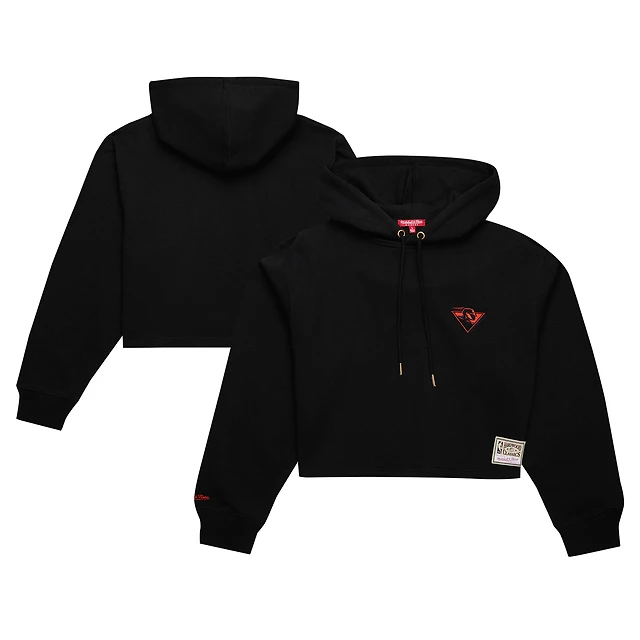 Women's Mitchell & Ness Black Chicago Bulls Hardwood Classics Cropped Pullover Hoodie