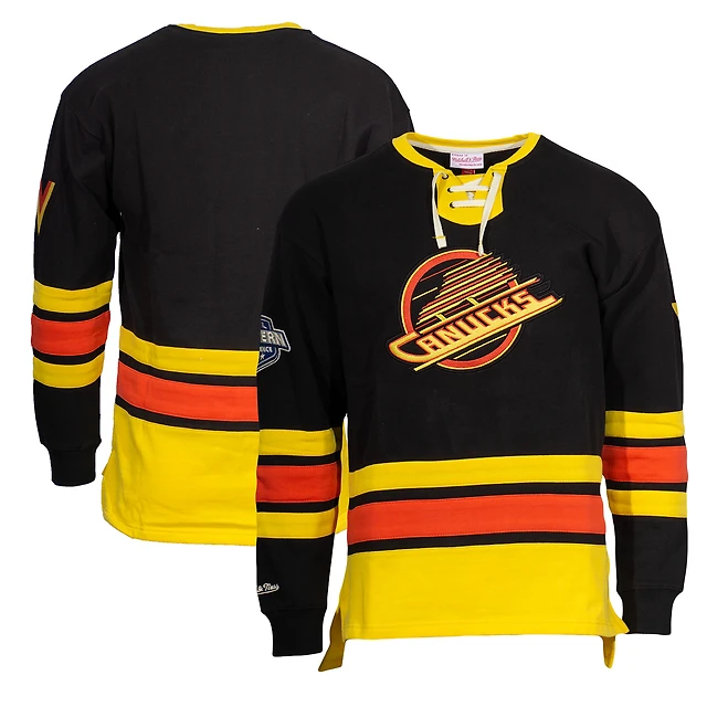 Mitchell & Ness Black Vancouver Canucks Heritage Lace-Up Pullover Sweatshirt