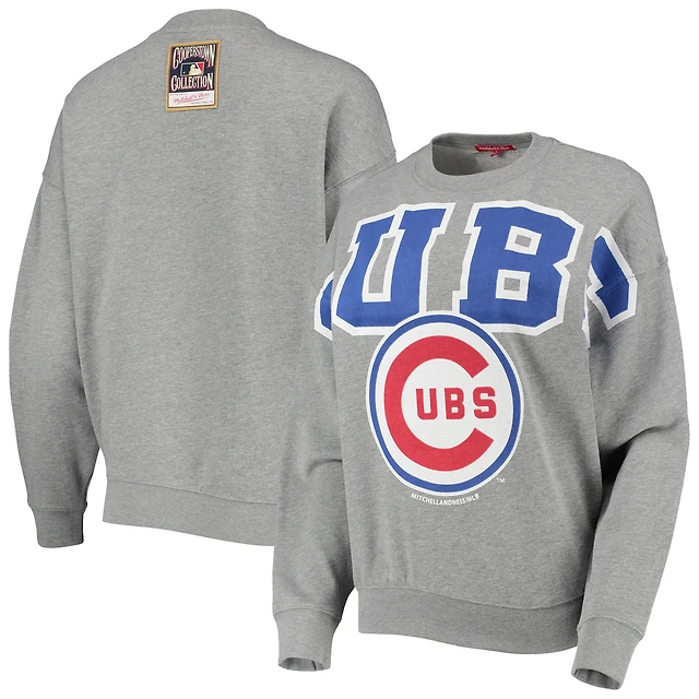 Women's Mitchell & Ness Heathered Gray Chicago Cubs Cooperstown Collection Logo Lightweight Pullover Sweatshirt