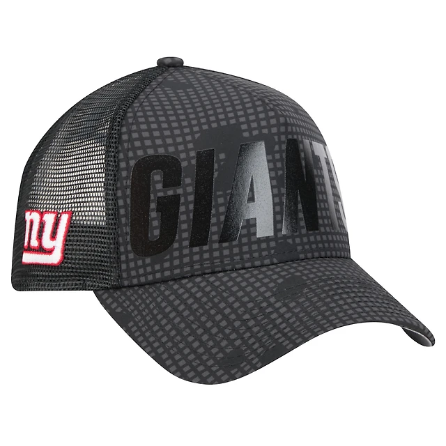 Men's New Era Black New York Giants Midnight Ink Tonal Text A-Frame Trucker 9FORTY Adjustable Hat