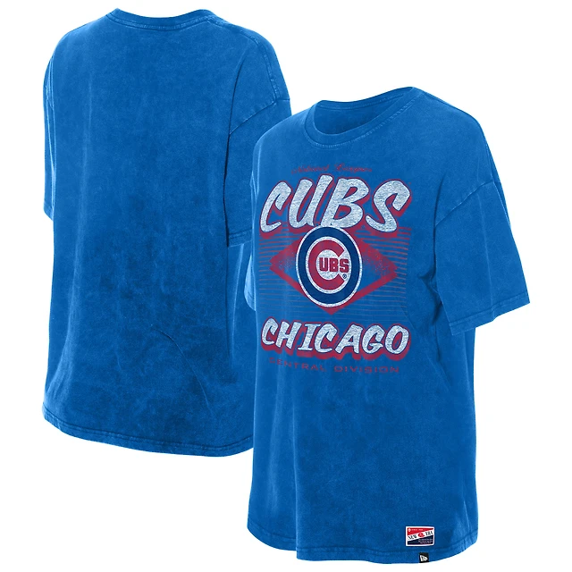 Women's New Era Blue Chicago Cubs Mineral Wash Oversized T-Shirt