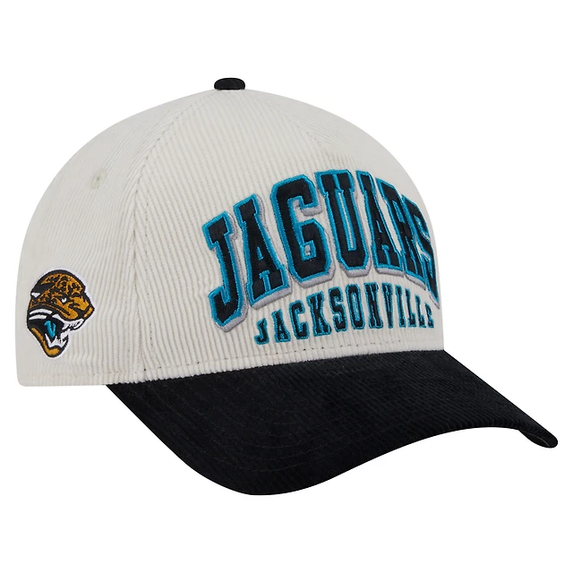 Men's New Era Cream/Black Jacksonville Jaguars Throwback Two-Tone Sided Corduroy 9FORTY A-Frame Adjustable Hat